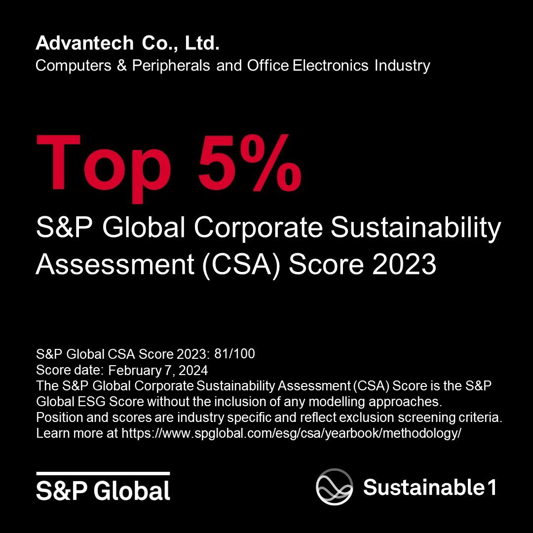 The S&P Global Sustainability Yearbook stands out as a prominent international publication focusing on Environmental, Social, and Governance (ESG) matters. It assesses the sustainable development practices of more than 9,400 large-scale companies across various industries worldwide. The evaluation is based on three key dimensions: environment, society, and governance. Among these companies, 759 are recognized as leaders, with rankings ranging from Top 1%, Top 5%, Top 10%, Sustainability Yearbook Members and the Industry Mover award, reflecting their performance within their respective industries. Advantech has notably distinguished itself among these global benchmark companies, securing a position in the Top 5% category. This accomplishment establishes Advantech as a rising star among the selected Taiwanese companies in the assessment.