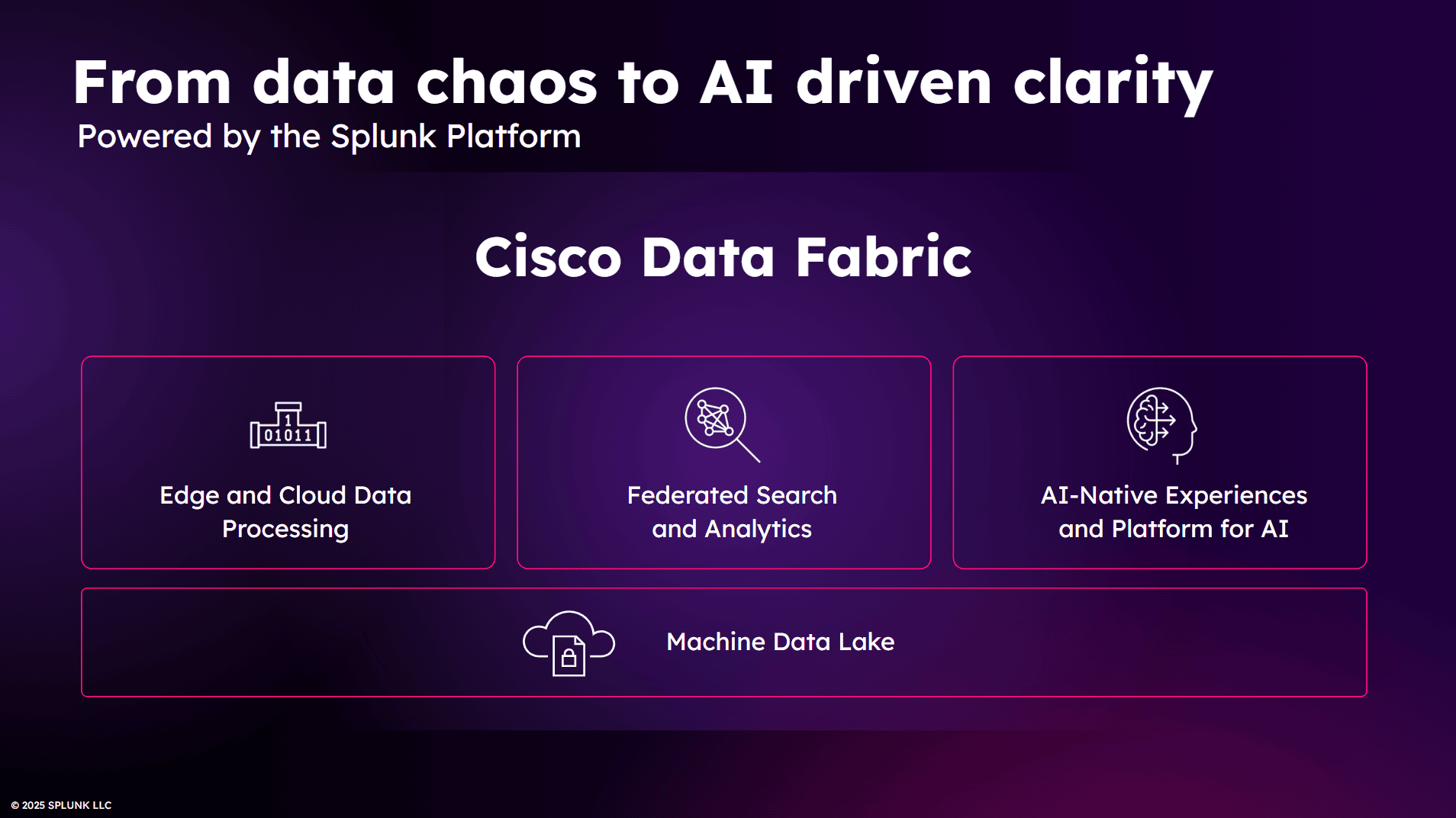 - AI wbudowane na każdym etapie: Platforma Splunk zawiera wbudowane funkcje AI wspierające wszystkie etapy cyklu życia danych, od wdrażania i zarządzania danymi, po wyszukiwanie agentowe i doświadczenie użytkownika, zwiększając produktywność, zwinność i innowacyjność.