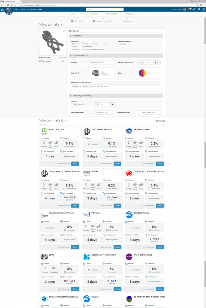 Przedsiębiorstwa, które poszukują nowych dostawców usług produkcyjnych ? w tym usług druku 3D ? umieszczają określone komponenty w ramach ich środowiska projektowego, lub zarządzają swoim ekosystemem wybranych dostawców usług i zasobów wewnętrznych, teraz mają dostęp do usług on-demand manufacturing (produkcji na żądanie) oraz intelligent part sourcing (inteligentnego zamawiania części). W efekcie usprawniona zostanie współpraca oraz całkowity proces innowacji.