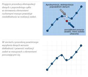 W pierwszym z prezentowanych przykładów (rysunek 1) aplikacja sterowana jest numerycznie. Poprawność działania komputera dokonującego niezbędnych obliczeń numerycznych ściśle zależy od poprawności danych docierających do modułów poruszających w obsługiwanym urządzeniu, a wszelkie braki przekładają się bezpośrednio na zaburzenie jej funkcjonowania. Jeżeli jakikolwiek pakiet danych zostanie pominięty, system korzysta z poprawnych danych z poprzedniego pakietu lub dokonuje ekstrapolacji na podstawie tych danych, obliczając zastępcze nastawy/dane. Taka sytuacja może niekorzystnie wpłynąć np. na jakość wytwarzanych produktów. Podstawowe rozwiązanie problemu utraty pojedynczych pakietów danych jest stosunkowo proste: w przypadku pojawienia się błędu lub braku danych maszyna powinna być zatrzymana i przywrócona ponownie do ruchu przy prawidłowej komunikacji. Wadą tego typu podejścia jest jednak konieczność wielokrotnego, częstego ponownego uruchamiania maszyny w sytuacji, gdy system sterowania byłby wysoce wrażliwy na oddziaływanie zaburzeń zewnętrznych lub technicznie cechował się częstą utratą czy przekłamywaniem sygnałów sterujących.