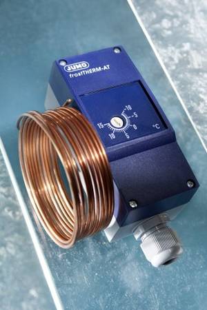 Wysoki stopień ochrony, wykorzystanie najnowszej technologii podłączeń elektrycznych oraz ochrona przed mrozem dużych układów wentylujących to najbardziej widoczne cechy nowego termostatu frostTHERM-ATs firmy JUMO. Dzięki monitorowaniu temperatury nawiewanego powietrza termostat zabezpiecza nagrzewnice wodne stosowane w systemach wentylacyjnych i klimatyzacyjnych.