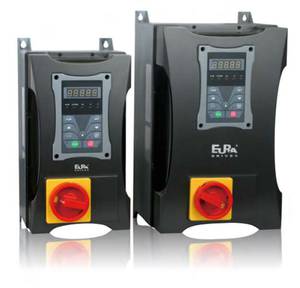 Takie rozwiązanie w znaczący sposób ogranicza koszty związane okablowaniem układu. Krótsze odcinki przewodów na odcinku przemiennik-silnik to nie tylko ograniczenie kosztów okablowania, to również brak konieczności użycia dodatkowych filtrów przeciwzakłóceniowych, które w istotny sposób wpływają na cenę układu automatyki. Obudowa o stopniu ochrony IP66 pozwala na stosowanie przemienników EURA? EP-66 w pomieszczeniach, gdzie występują trudne warunki pracy np. oczyszczalnie ścieków, obiekty inwentarskie, przepompownie.