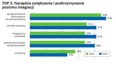 Ponad jedna trzecia ankietowanych zgodnie przyznała, że boryka się z takimi problemami, jak: brak budżetu na wdrażanie systemów integracji czy szkolenie pracowników, niedobór kadr oraz pewnego rodzaju dezorientacja co do zakresu podjętych działań w kontekście wymiernych korzyści dla przedsiębiorstwa.