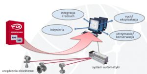 -> każde, pojedyncze urządzenie otrzymuje pakiet wszystkich nastaw, danych konfiguracyjnych oraz wsparcie wizualizacji, która jest kompatybilna z każdym systemem nadrzędnym zarejestrowanym jako zgodny ze standardem FDI;