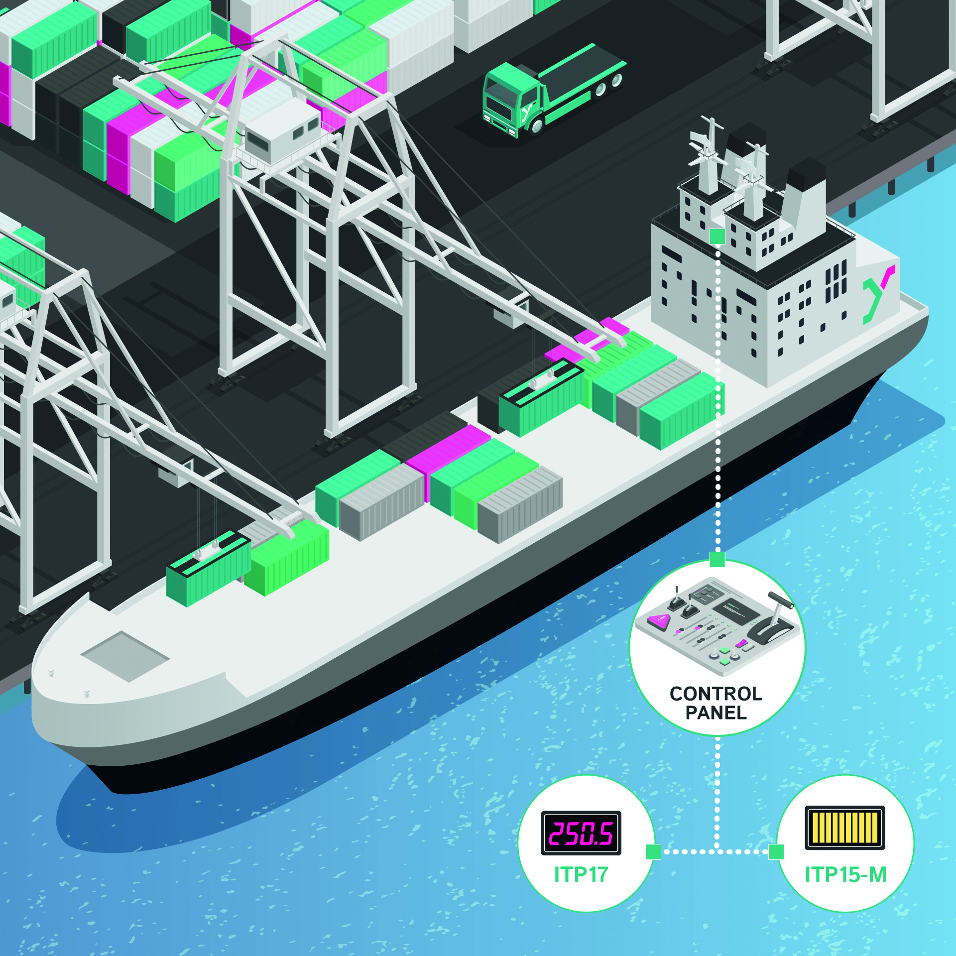 Zarówno uniwersalny wskaźnik ITP17, jak i wskaźnik słupkowy ITP15-M idealnie nadają się do lokalnego wyświetlania oraz prostego przełączania progowego w panelach sterowniczych dla sygnałów takich jak temperatura, poziom napełnienia, ciśnienie, wilgotność i podobnych sygnałów procesowych. Typowe zastosowania obejmują wszystkie miejsca, w których wystarczający jest kompaktowy wyświetlacz panelowy z konfigurowalnymi progami. W systemach pokładowych statków mogą być stosowane na przykład do monitorowania regulacji wody balastowej, systemów chłodzenia i wentylacji, zasilania oraz napędu, a także kotłów okrętowych oraz systemów parowych.