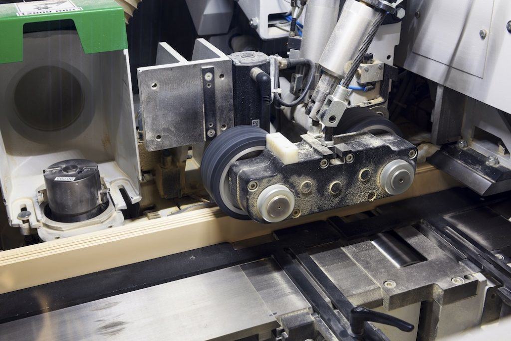 Rolki podajnika przenoszą drewno w obrębie maszyny, gdzie jest ono przetwarzane przy użyciu specjalnych narzędzi, takich jak heblarki, do pożądanego rozmiaru. Mocowanie i zaciskanie narzędzi odbywa się za pomocą szybkiego systemu chwytaków, kontrolowanego przez proste przekaźniki programowalne firmy Eaton umożliwiające szybką wymianę narzędzi. Dzięki podświetlanemu przyciskowi użytkownik może obsługiwać chwytaki, blokując je lub odblokowując elektronicznie.