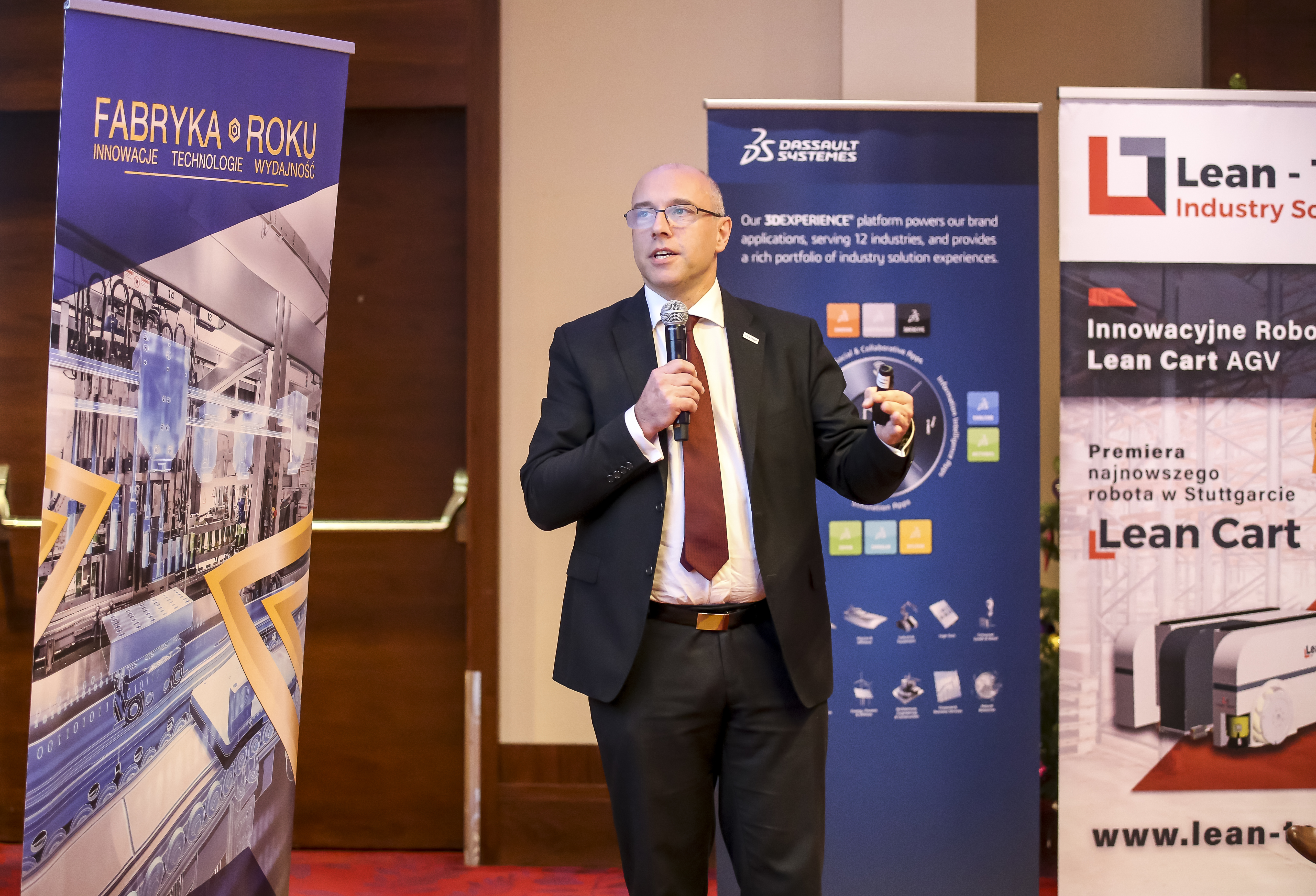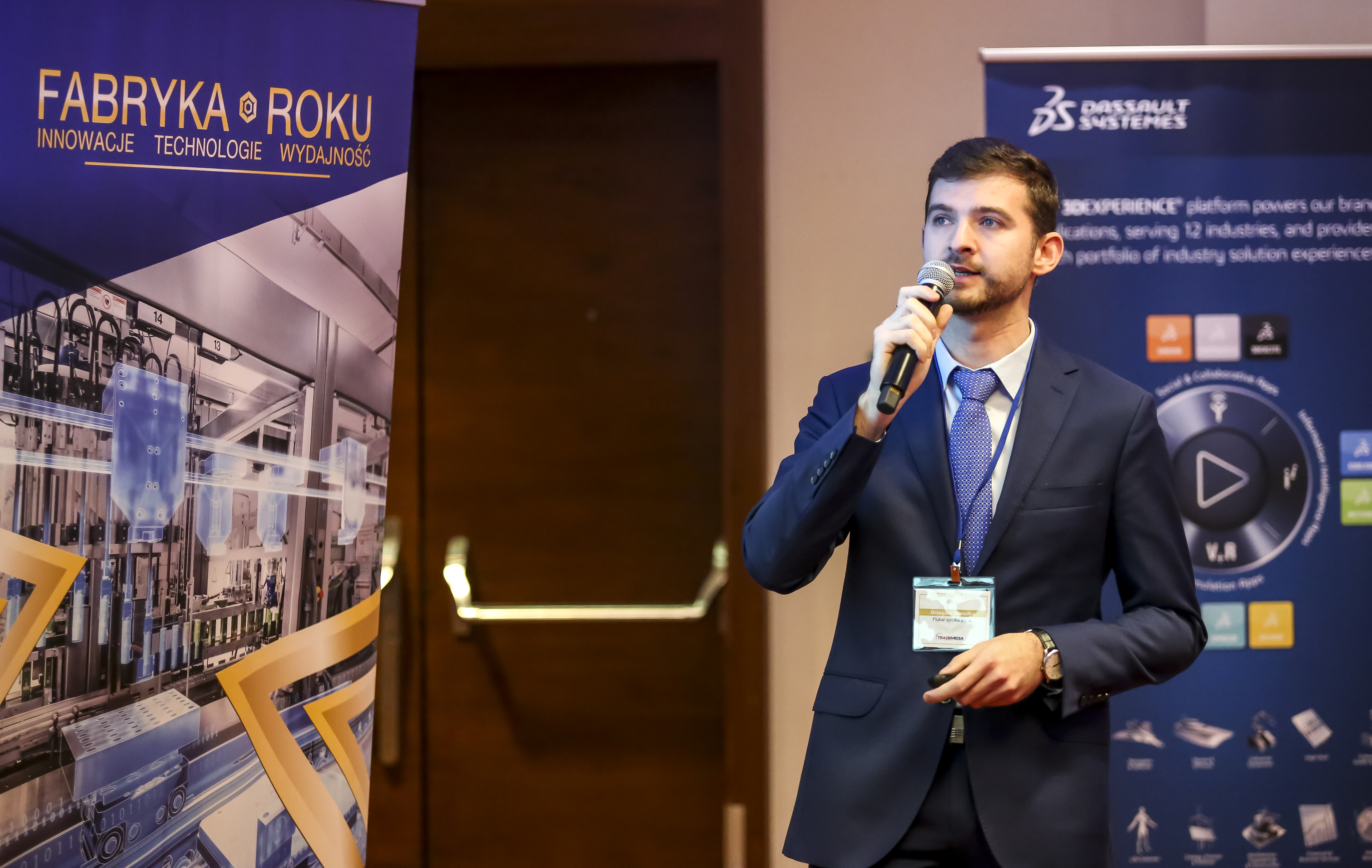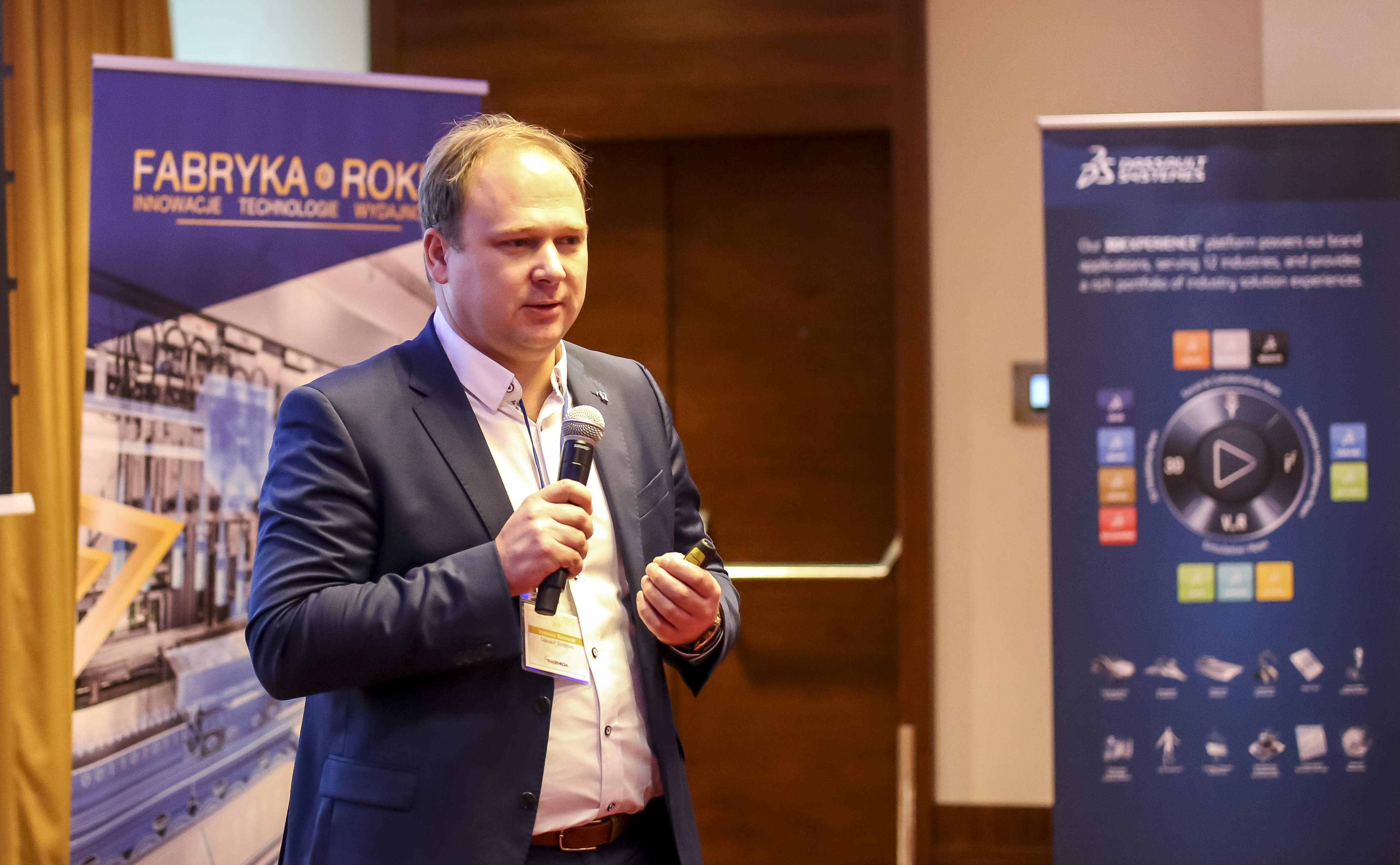 Fabrykę przyszłości przedstawił Ireneusz Borowski Country Manager w firmie Dassault Systemes. Jak ocenił, koncepcja fabryki przyszłości kusi realnymi korzyściami w różnych obszarach funkcjonowania przedsiębiorstwa. Pozwala na usprawnienie produkcji, lepsze wykorzystanie aktywów, zwiększenie produktywności lub optymalizację kosztów. Optymalizacja to również reakcja na zmiany w popycie. Warto zwrócić uwagę na AI rozwiązujące szereg zagadnień od strategicznych do taktycznych, aby lepiej dostosować działania firmy do zmieniającej się sytuacji rynkowej oraz na analizy prowadzone w celu efektywnego podejmowania decyzji, planowania i ciągłego doskonalenia.
