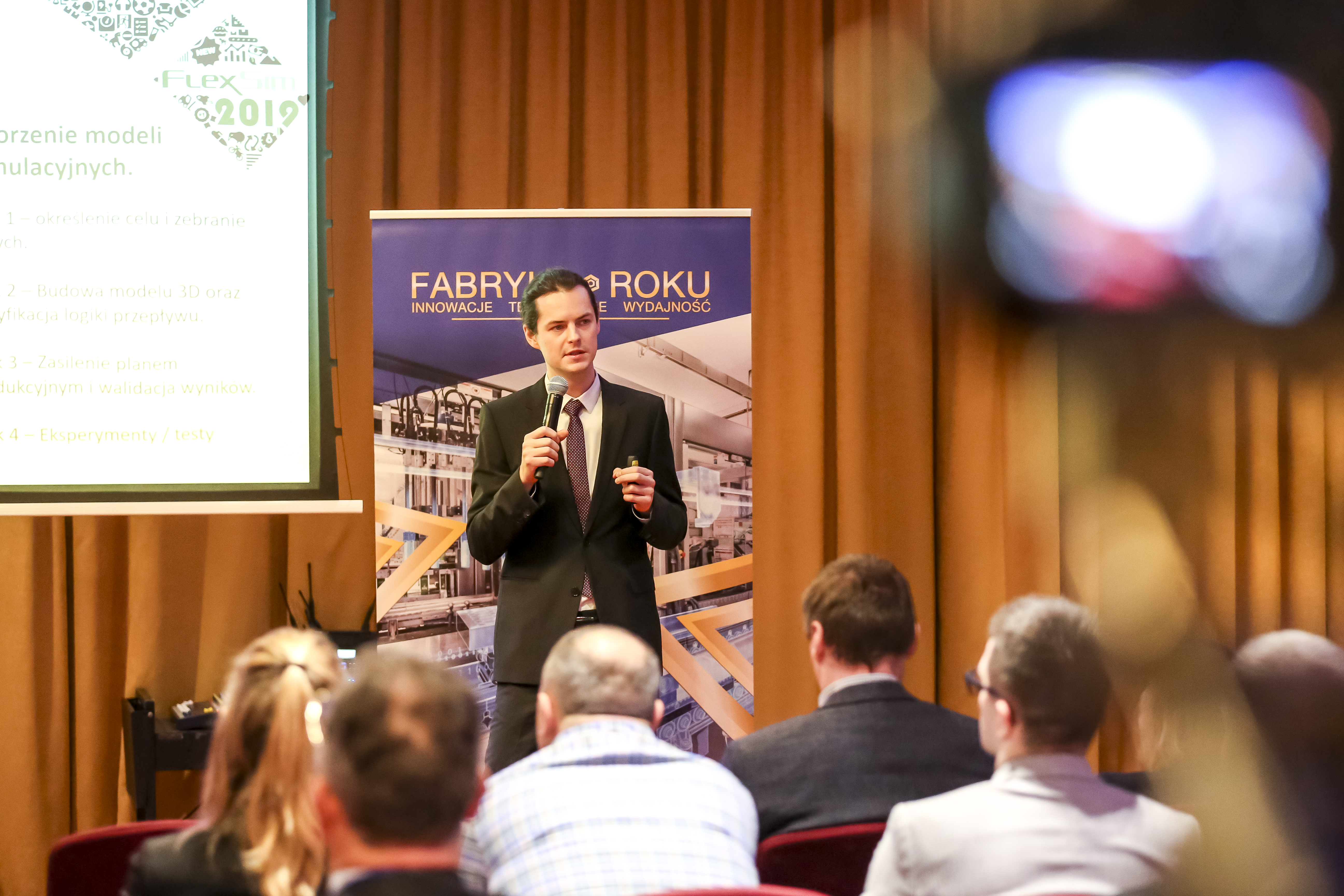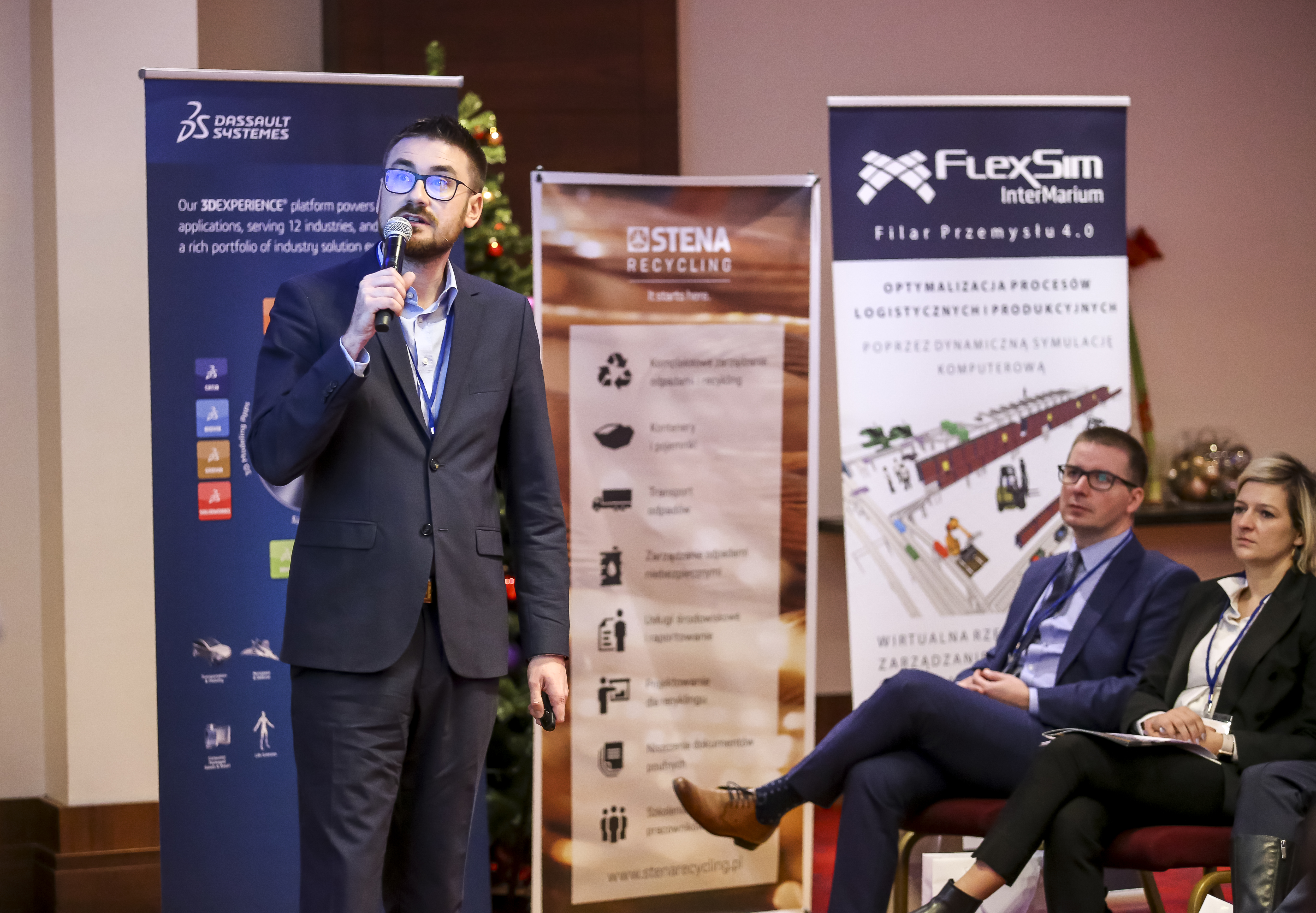 Cyfrową fabrykę oraz symulację procesów produkcyjnych i logistycznych przedstawił Filip Polit menadżer Sprzedaży Krajowej w firmie FlexSim InterMarium. Jak stwierdził, dynamicznie rozwijające się przedsiębiorstwa stoją przed zadaniem szybkiej i skutecznej adaptacji do potrzeb klientów. Niejednokrotnie prowadzi to do konieczności wdrażania zmian w procesie produkcyjnym i/lub logistycznym, przebudowy linii czy nawet rozbudowy zakładu. Wiąże się to z ryzykiem inwestycyjnym, zatrzymaniem produkcji, jak również niepewnością czy planowane zmiany będą prowadzić do oczekiwanych rezultatów. Kolejne kroki przy tworzeniu modeli symulacyjnych, to: określenie celu i zebranie danych, budowa modelu 3D oraz weryfikacja logiki przepływu, zasilenie planem produkcyjnym i walidacja wyników oraz eksperymenty i testy. Zaprezentowane zostały również projekty symulacyjne rzeczywistych procesów produkcyjnych i logistycznych stanowiące podstawę decyzji inwestycyjnych.