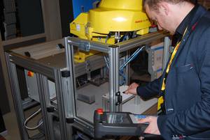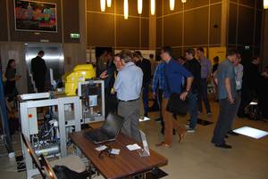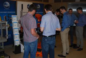 Szczególnym wydarzeniem były warsztaty ?Robotics Comparison Workshop?, prowadzone przez Dobromiłę Struzik-Włodarską. Ich uczestnicy mieli możliwość zobaczenia ?na żywo? procesu programowania robota firmy FANUC. Zadanie polegało na zlokalizowaniu detalu na płaszczyźnie 2D. Wyposażony w kamerę robot pobierał zdjęcie obiektu i kolejne, do aktualnej jego pozycji. Wykorzystano do tego celu wbudowany system wizyjny FANUC. Oprogramowanie robota typu WEB serwer pozwala dobrać optykę, oświetlenie. Można też programować automatycznie, korzystając z modelu CAD. Kolejnym zadaniem postawionym przed uczestnikami przez WObit było zaprogramowanie kontrolera modułów liniowych do wykonania ruchu o trajektorii prostokątnej, a następnie trójkąta. Wykorzystano do tego darmowe oprogramowanie oferowane przez firmę.