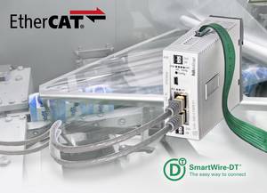 Dzięki wprowadzeniu nowego modułu gateway system SmartWire-DT obsługuje nie tylko protokoły Profibus-DP, CANopen, Modbus-TCP, Ethernet/IP, PROFINET i Powerlink, lecz także EtherCAT, który został opracowany przez firmę Beckhoff specjalnie do wysokowydajnych zastosowań w automatyce wymagających działania w czasie rzeczywistym. Oznacza to, że wszystkie korzyści filozofii SmartWire-DT firmy Eaton, takie jak uproszczone projektowanie, montaż, wykonywanie instalacji, rozruch i konserwacja, są już dostępne dla użytkowników EtherCAT. Obecnie SmartWire-DT obsługuje urządzenia sterujące, styczniki, rozruszniki silnikowe, układy łagodnego rozruchu, przemienniki częstotliwości, a nawet wyłączniki mocy i urządzenia HMI/PLC, jak również peryferyjne moduły maszyn we/wy IP67.