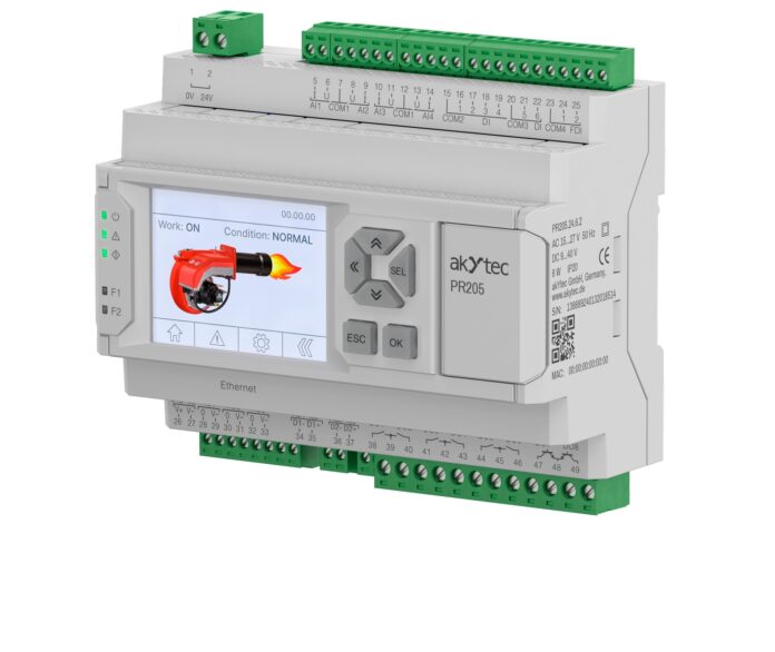 Dzięki elastycznym wejściom uniwersalnym PR205 może przetwarzać sygnały z wielu czujników – w tym czujnika temperatury, przekaźnika ciśnienia, przepływomierza i innych urządzeń – przez cztery kanały analogowe (PT1000, NTC/PTC, 0…10 V, 4…20 mA). PR205 ma standardowo złącze Ethernet (10/100 Mb/s, Modbus TCP) oraz dwa szeregowe złącza RS-485 (Modbus RTU/ASCII). Programowanie odbywa się w bezpłatnym oprogramowaniu akYtec ALP, obsługującym języki IEC 61131-3, takie jak funkcjonalny schemat blokowy (FBD) i tekst strukturalny (ST).