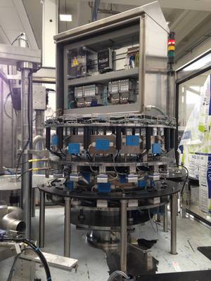 Obecnie kontroler CompactLogix L36 komunikuje się z modułem Point I/O wykorzystując system radiowy od ProSoft Technology, co zapewnia szybką i niezawodną transmisję danych ze stołów obrotowych służących do nakładania i termicznego przytwierdzania etykiet do butelek.
