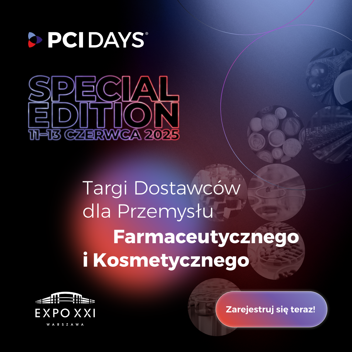 Targi PCI Days to nie tylko wyjątkowa okazja do spotkania z czołowymi dostawcami surowców, opakowań, maszyn, urządzeń laboratoryjnych i firm kontraktowych, ale także bogaty program merytoryczny pełen praktycznych wskazówek, eksperckiej wiedzy i inspiracji. Jeśli chcesz być na bieżąco z najnowszymi trendami, wyzwaniami regulacyjnymi oraz innowacjami w branży farmaceutycznej, kosmetycznej i suplementów diety – nie może Cię tam zabraknąć!