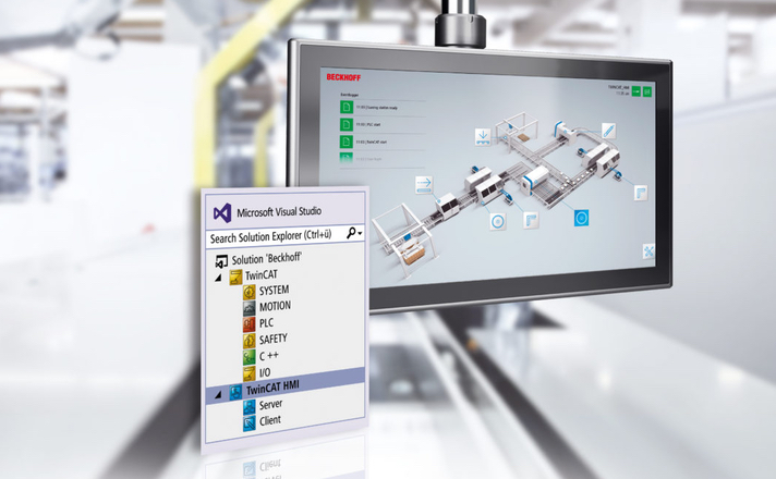 Oprogramowania TwinCAT HMI integruje system do tworzenia wizualizacji bezpośrednio w środowisku Microsoft Visual Studio, daje możliwość korzystania z otwartego standardu HTML5 i zapewnia wysoką wydajność i responsywność tworzonych interfejsów oraz ich niezależność od platformy sprzętowej. TwinCAT HMI spełnia tym samym wymogi stawiane rozwiązaniom zgodnym z koncepcją Industry 4.0. Dobry interfejs użytkownika powinien być ergonomiczny, przejrzysty i łatwy w użyciu. Beckhoff dodaje do tej listy również wymogi co do efektywności i szybkości procesu tworzenia wizualizacji. Poprzez integrację TwinCAT HMI z Visual Studio projektanci uzyskują dostęp do intuicyjnego edytora typu ?What-You-See- -Is-What-You-Get? (WYSIWYG), który umożliwia szybkie pobieranie elementów kontrolnych i wyświetlających z biblioteki, ich rozmieszczanie oraz łączenie ze zmiennymi systemowymi. Możliwe jest też tworzenie modułów składających się z wielu elementów i ich wielokrotne używanie, co pozwala na szybką rozbudowę systemu i zmniejsza nakład wymaganych prac projektowych. TwinCAT HMI zawiera też gotowe szablony, które mogą być wykorzystane w tworzonej wizualizacji celem budowy złożonych i jednocześnie ergonomicznych interfejsów użytkownika. Zależnie od typu aplikacji i potrzeb projektanta, wizualizacja może być zaimplementowana zarówno po stronie klienta przy wykorzystaniu języka JavaScript lub po stronie serwera jako rozszerzenia w języku C++ lub .NET. Te ostatnie zapewniają maksymalny poziom ochrony własności intelektualnej. W przypadku osób nie planujących kodować we wspomnianym JavaScript dostępna jest też możliwość konfiguracji elementów w edytorze graficznym zamiast ich programowania!