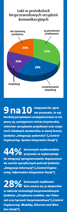 W ankiecie przeprowadzonej przez amerykańską edycję magazynu Control Engineering zapytano użytkowników z branży automatyki, sterowania oraz produkcji urządzeń, jakie korzyści płyną dla nich z zastosowania konkretnych rozwiązań dotyczących integracji, eksploatacji oraz wydatków na rzecz mobilności, sieci Ethernet i technologii bezprzewodowych. Działania związane z tymi obszarami stają się kluczowe dla przeprowadzania w przedsiębiorstwach procesów integracji, wspierania idei Internetu Rzeczy (Internet of Things ? IoT) i Przemysłowego Internetu Rzeczy (Industrial Internet of Things ? IIoT), jak również dla optymalizacji i analizy zbiorów danych big data.