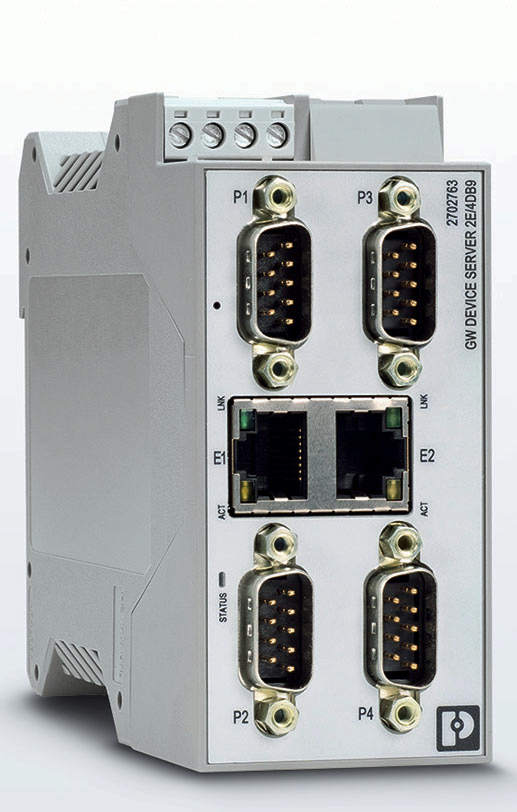 stanowią dobry sposób na przejście z urządzeń szeregowych na nowoczesną komunikację ethernetową. Na rynku dostępne są urządzenia wyposażone w uniwersalne porty RS-232/485, z jednym, dwoma lub czterema portami szeregowymi i z jednym lub dwoma portami Ethernet. Serwery urządzeń mogą pełnić rolę ?wirtualnego portu COM? oraz jako naturalne urządzenie Ethernet TCP lub UDP. Oprogramowanie COM Port Redirector, a także sterowniki Microsoft Windows są dostępne dla integracji w aplikacjach PC.